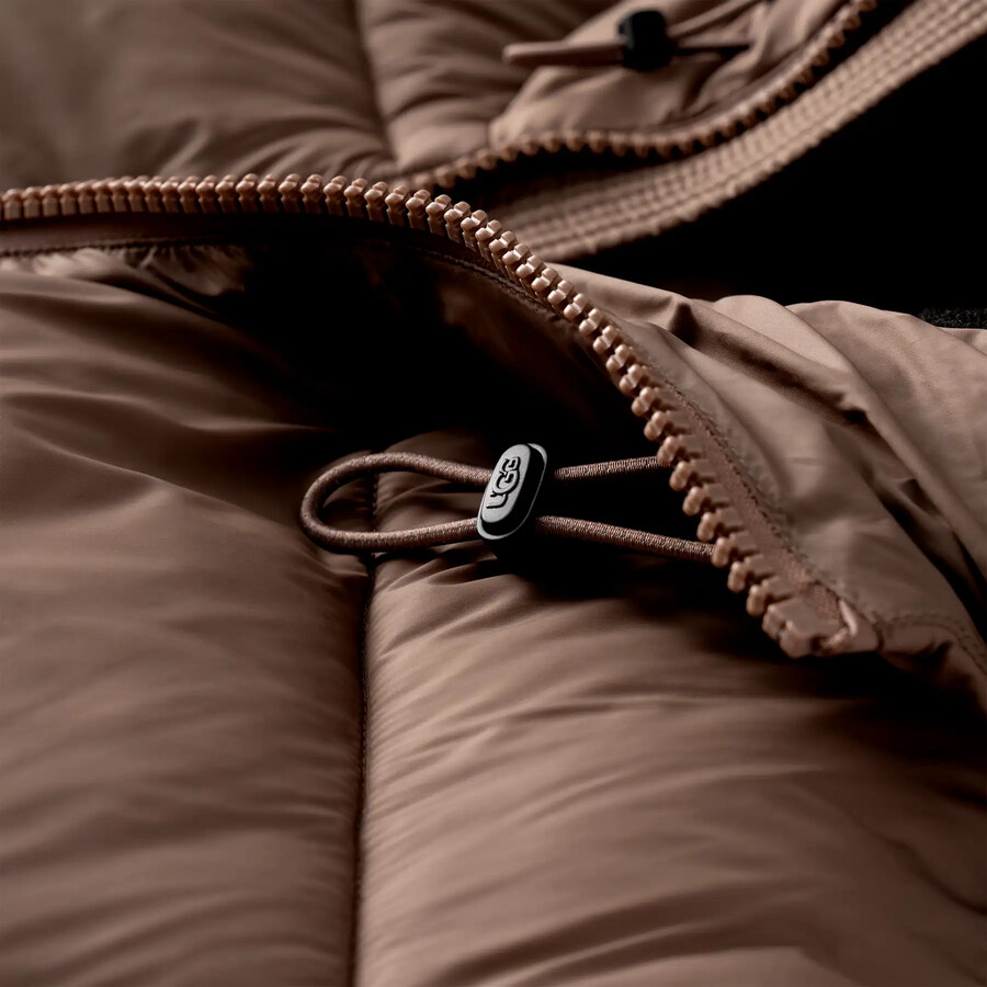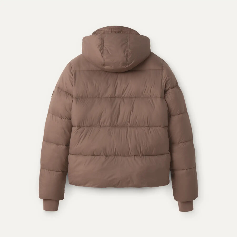 - Hooded puffer with 100% Polyester plush fleece lining at hood