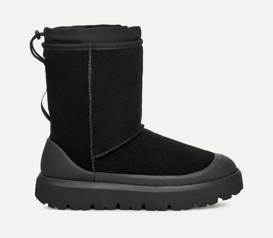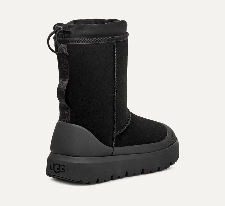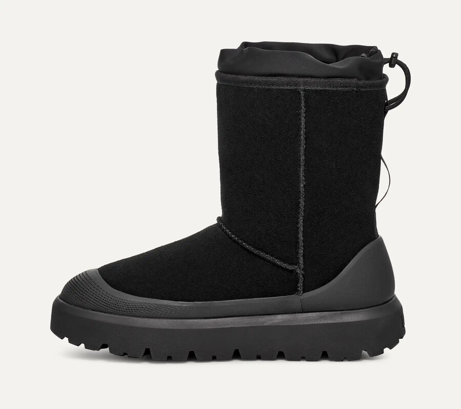 • Our iconic Classic Boot t gets a upgrade weatherized.The Classic Short Weather Hybrid’s soft suede agora offers waterproof defense against the elements. It’s lined in our UGGplush™A janela upcyclada e finished com uma faixa extrole feita de renewable, rainwater-nourished sugarcane para todos os dias e um perfil clássico-suave. Featuring Spider Rubber™Outsole pods for traction.