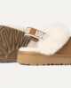 Smaller em size but big on style, our kids’ Funkette keeps the same slip-on silhouette, bold platform, e soft lining como o original. Crafted from rich suede with a cozy sheepskin collar, we added we added a backstrap with The Graphic UGG®Font para ajudar.Pair with our matching women’s slipper for cute mini-me photo ops.The outsole of this product is either a sugarcane EVA outsole, por que é um responsible, sugarcane foom that allows to reduce dependency em fossilene uels por ypetle™Outsole.
