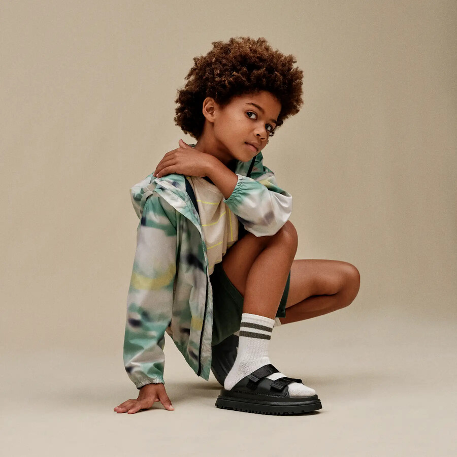 - Hook-and-loop closure, adjustable vamp straps, the quarter strap webbing made with 100% recycled polyester fibers