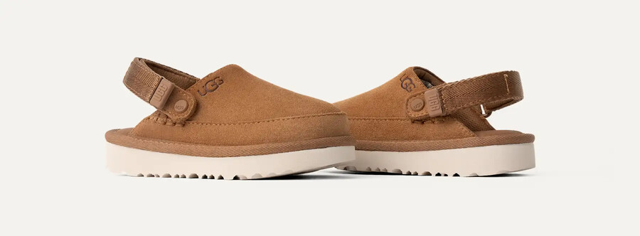 • Clogs é o show do moment, que é o amor dos kids do UGG®With a suede upper e a foam footbed.An anti-odor-treated textured lining helps keep little feet fresh, our adjustable heel strap and hook-and-loop closure make the fit just for all-day play. Pair it with men’s and women’s sizes for a family mini-me moment.