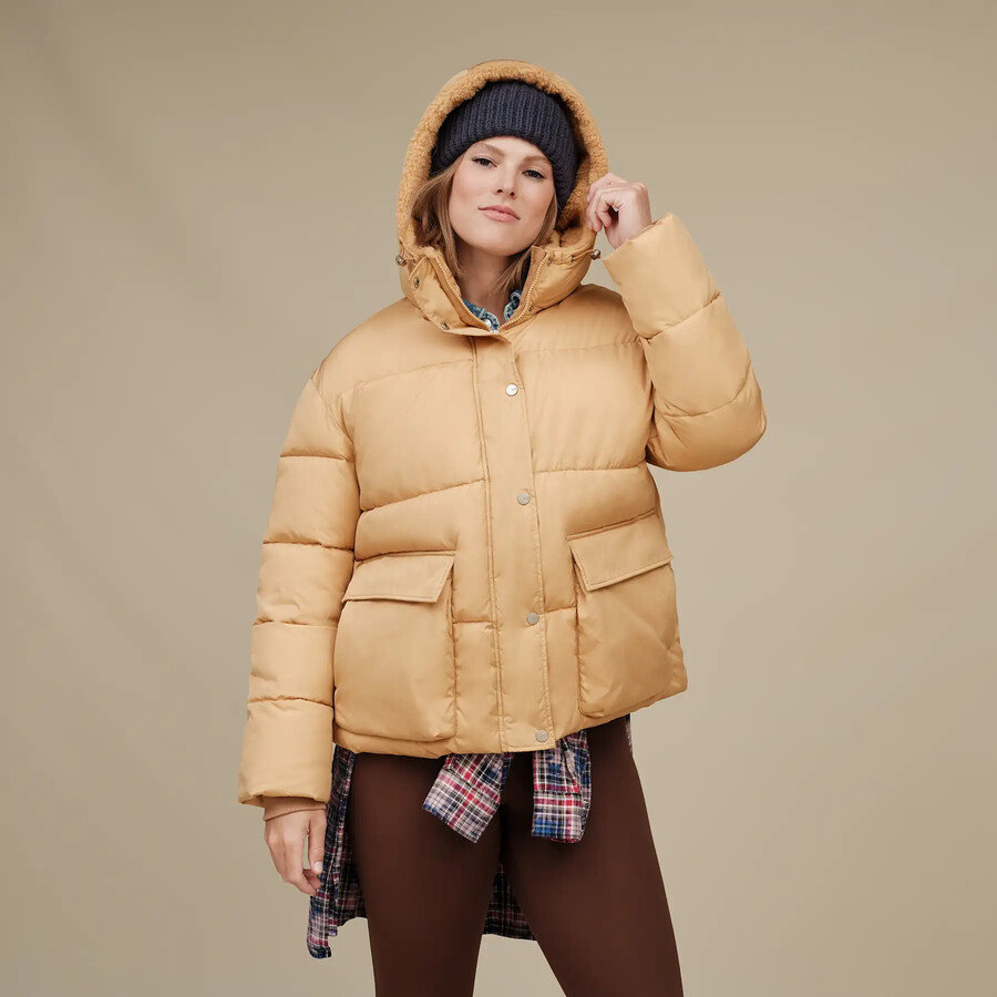 - Bungee drawcord in hood with The UGG®Logo em metal cord stoppers